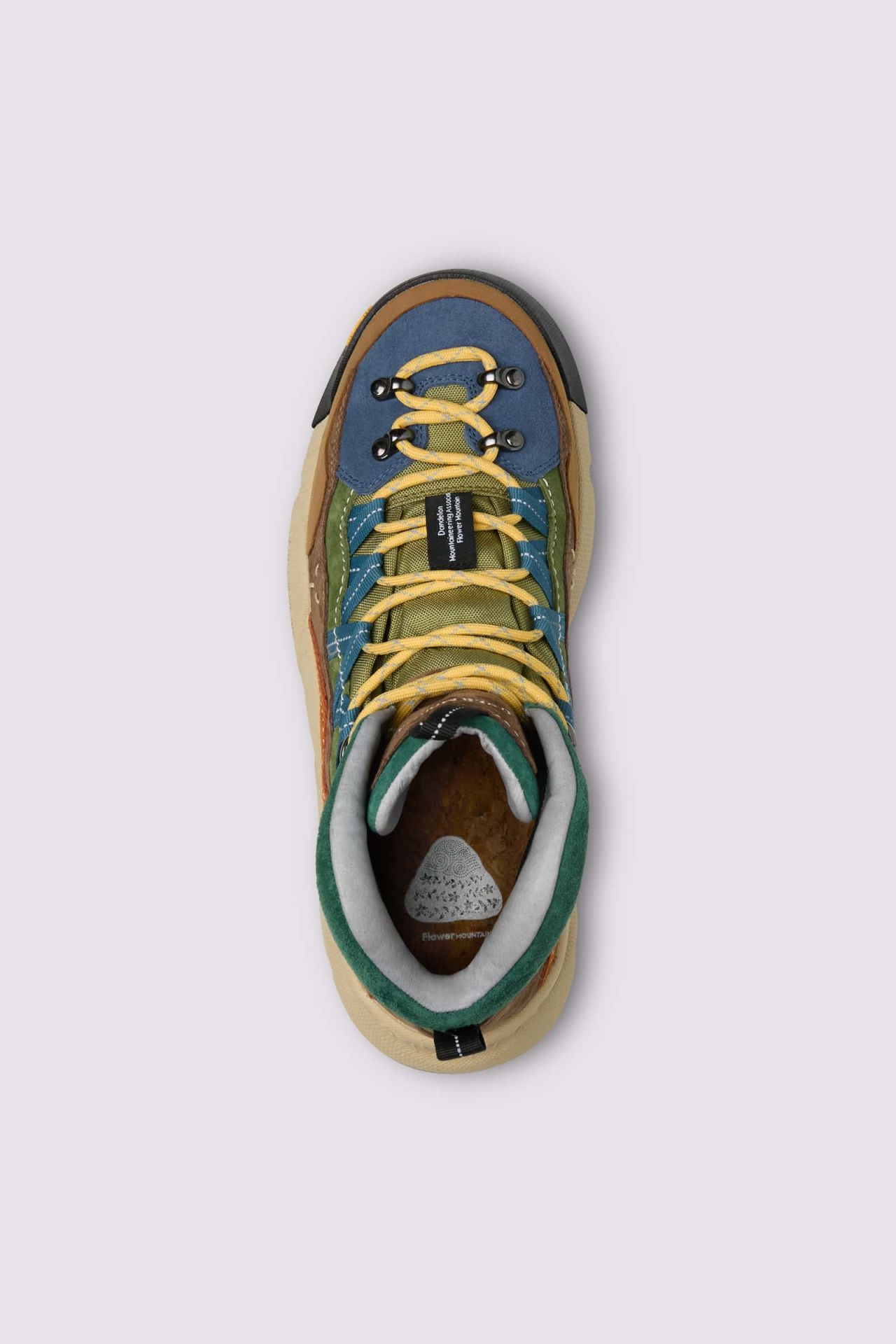 Mid-rise sneakers with lines inspired by trekking models. The technical fabric upper with waterproof membrane is combined with enveloping suede and leather inserts. The hiking eyelets and colourful laces add character and functionality. Removable insole in natural cork with anatomical shape and antibacterial treatment. Vibram sole with megagrip design.