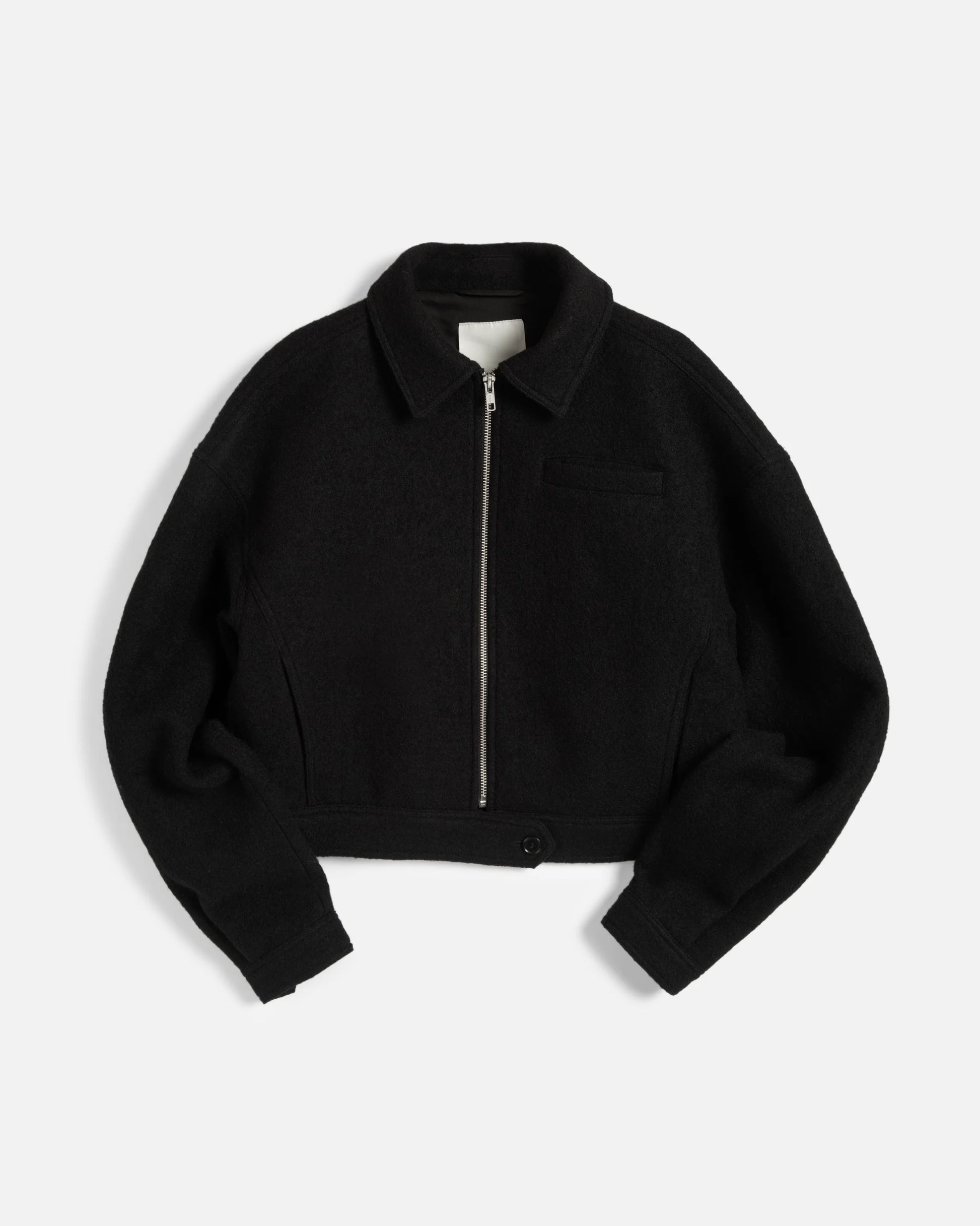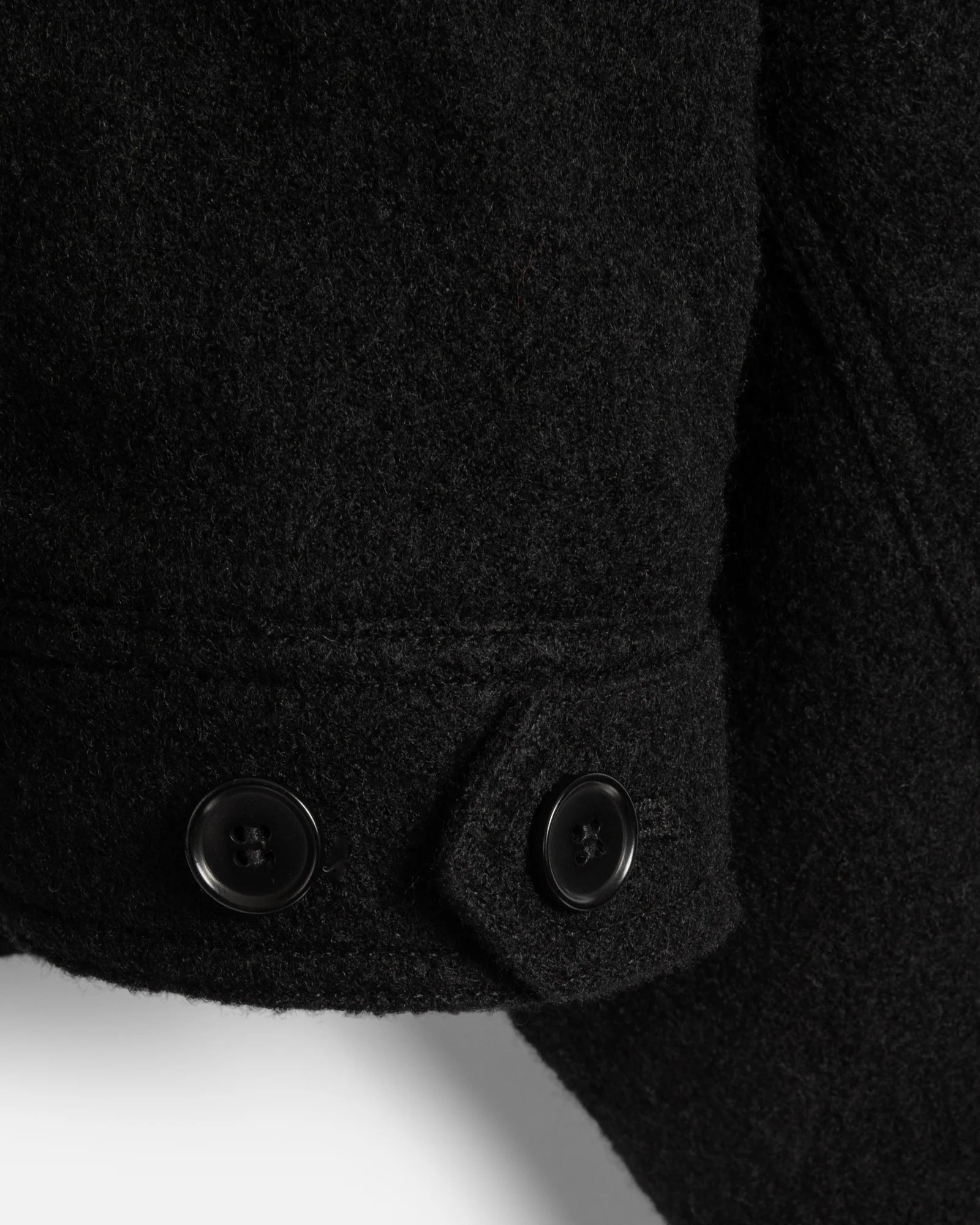 The Burnside Jacket Black offers a refined design crafted from 100% wool, providing exceptional warmth and durability. Its cropped silhouette adds a modern edge while maintaining a tailored fit.