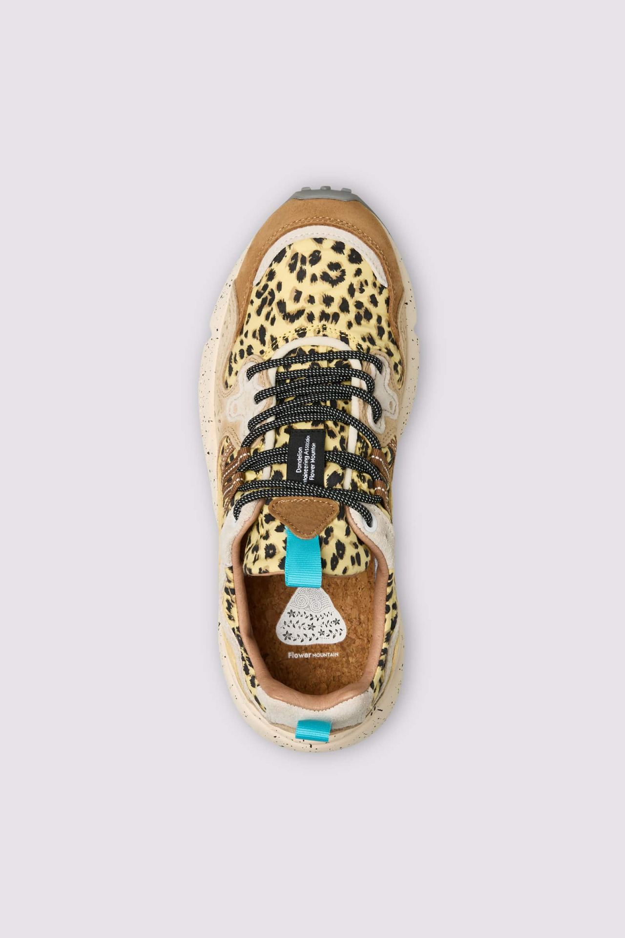 Sporty sneaker with technical fabric upper and animal print, complete with multicoloured suede inserts. Leather and textile lining and antibacterial natural cork insole. Moulded, ultra-light rubber sole with indented tread.